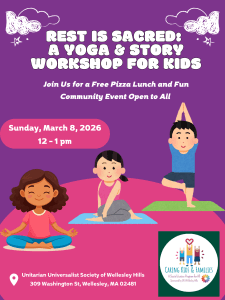 In a world that tells our children (and us) to hurry, compete, and constantly achieve, what would it mean to teach them that rest is sacred and, in fact, an act of resistance? During this special one-hour Caring Kids workshop, we will gather for lunch and story time as we read a beautiful book about presence and peace. After the story, we’ll gently introduce and explore yoga as a spiritual practice, a way people around the world connect breath, body, and spirit.